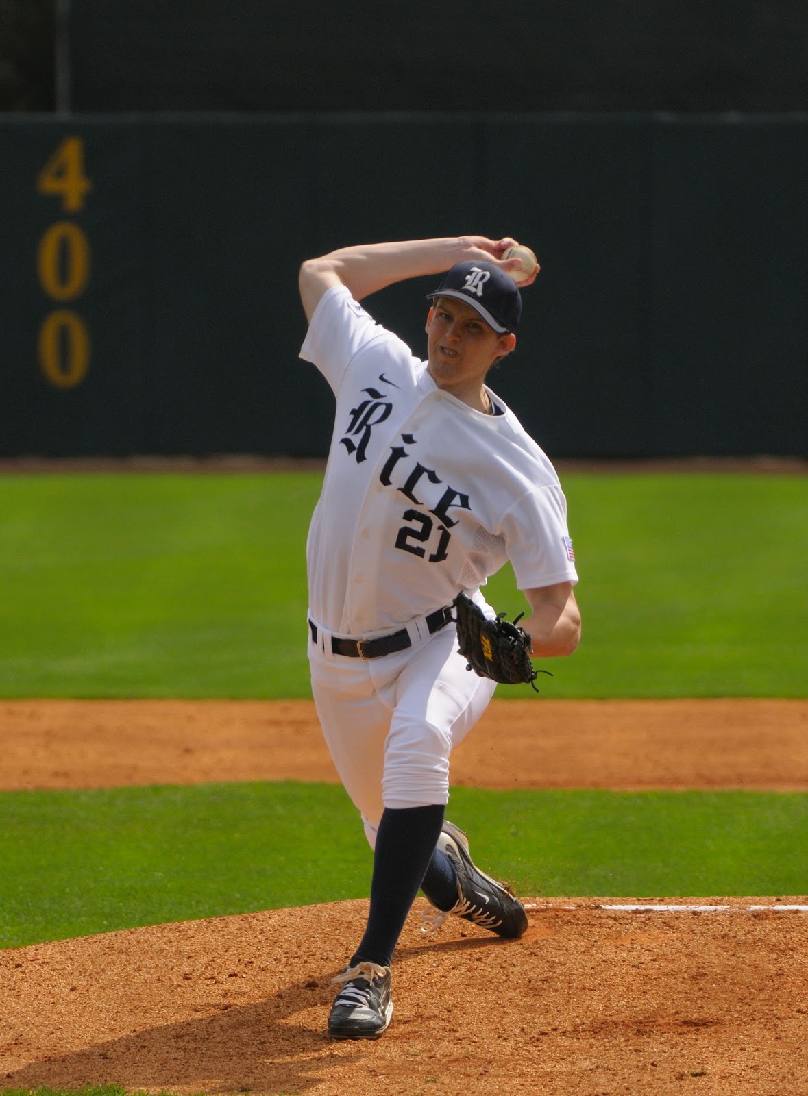 I'm a big baseball fan but today it was all about getting a few close-up photographs. I took the 200-400mm zoom lens and added a 1.4 extender, making for an effective focal distance of 300-600mm. As it turned out I got more than a few; tough to decide which ones to throw out... Here are quite a few pics of starting pitcher Austin Kubitza, a freshman who seemed very cool and totally in command on the mound. Plus a few others of some of the hitters in action; or at least attempting to produce some hits. On the day the Rice offense did not come through; once or twice they had several runners on base but the crucial hits just didn't materialize. As a result Rice lost to Stanford 6-2.